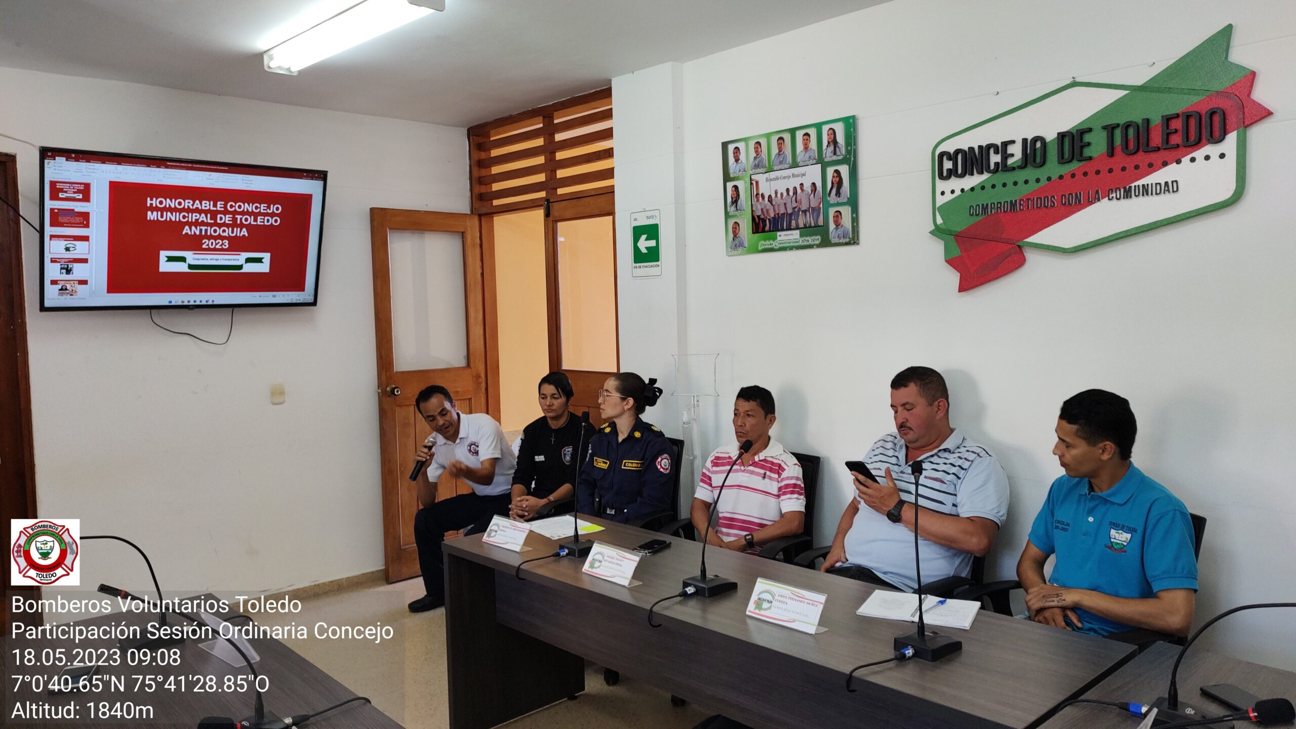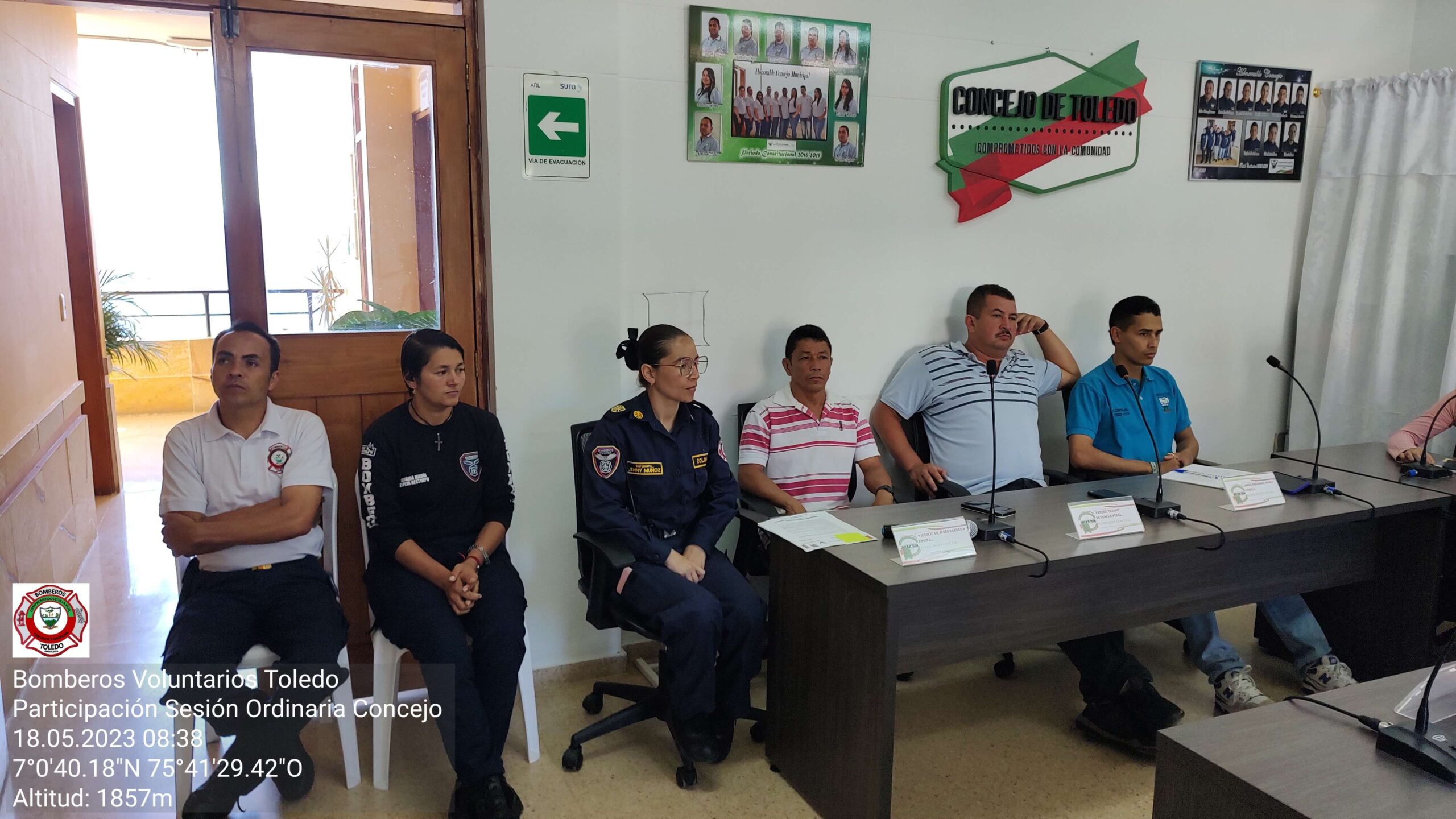 El Cuerpo de Bomberos Voluntarios del Municipio de Toledo – Antioquia, hizo presencia institucional en el recinto del Concejo Municipal de Toledo Antioquia en donde se trataron temas de imporancia como fue: